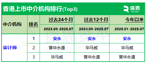 三、今年7個月的數(shù)據(jù) (2025年1月至2025年7月)就過去7個月的數(shù)據(jù)來看,這13間審計師中的8間參與 53家新上市公司的審計業(yè)務(wù)就過去7個月排名前四位的審計師分別是:安永、畢馬威、普華永道、德勤,分別參與21家、12家、8家、6家,占比分別為39.6%、22.6%、15.1%、11.3%。