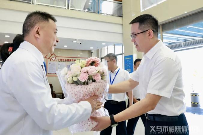 希望大家繼續(xù)秉持醫(yī)者仁心的崇高精神,堅守崗位、履職盡責(zé),不斷提升專業(yè)能力和服務(wù)水平醫(yī)院要加快推進項目建設(shè),持續(xù)優(yōu)化醫(yī)療資源配置,充分發(fā)揮特色學(xué)科優(yōu)勢,讓人民群眾在家門口享受到更加優(yōu)質(zhì)高效的醫(yī)療服務(wù)8月13日上午,丁政先后來到浙江大學(xué)醫(yī)學(xué)院附屬兒童醫(yī)院義烏醫(yī)院(義烏市兒童醫(yī)院)、稠江街道社區(qū)衛(wèi)生服務(wù)中心,走訪慰問一線醫(yī)務(wù)工作者,為他們送上鮮花并致以節(jié)日祝福和崇高敬意。