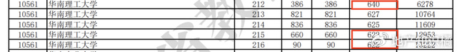 華工也一樣,最低分622,但最高分有640,也比深理工高出不少。
